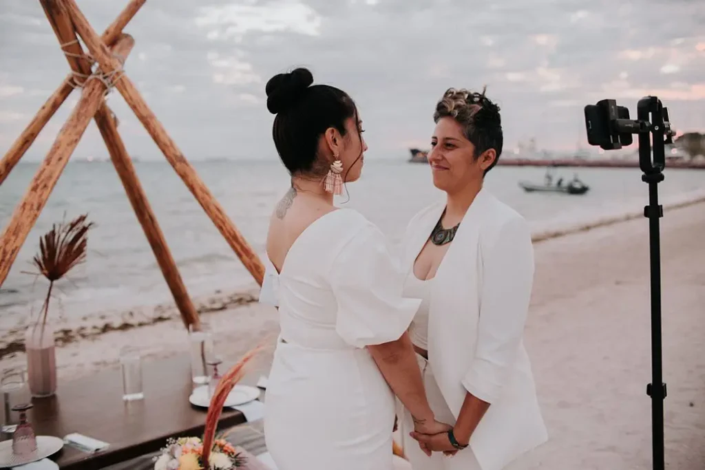 You can also incorporate Mexican traditions like the Lazo (a floral or rope lasso placed around you both as a symbol of unity) or cacao rituals, zapotec ritual or maya rituals. Both translate beautifully into same-sex ceremonies — your officiant, or the two of you, can make them feel as personal as you want.